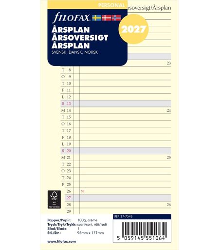 Filofax 2027 Refill Personal Årsplan