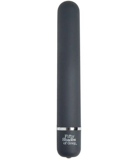 Hvad er.. Fifty Shades of Grey – Vibrator, er en forførende fræk og utrolig kraftfuld vibrator. Dens klassiske form er velkendt for de fleste, og frister dig til at udforske forskellige former for stimulation. Den kan nemlig bruges til sololeg og parlege, til frække forspil og dampende hede lege i soveværelet, i bilen eller hvor end du ønsker det. Vi er derfor sikre på, at denne vibrator hurtigt vil blive dit foretrukne sexlegetøj. Brug den til at stimulere klitoris, og mærk hvordan dens vibrationer vil få dig til at gispe af nydelse. Eller hvad med at bruge den vaginalt og lad den pirre dit g-punkt. Du kan også tage den med i badet, uanset om du vil nyde den i karbad, eller under bruserens varme vand, den er nemlig vandtæt, så du kan lege med den hvor du ønsker det. Designet er.. Designet på denne frække vibrator, er enkel og alligevel elegant at se på. Dens klassiske slanke glatte form gør den let at lege med, men den er også utrolig nem at håndtere, da man blot skifter vibrations niveau ved at dreje let i bunden på den. Man kan altså skrue op og ned for vibrationerne, så man får den helt perfekte nydelse og stimulation. Hvordan får jeg mest ud af.. Denne vibrator kan på grund af dens glatte design, bruges både med og uden glidecreme. Vi anbefaler dog at man vælger at bruge en smule glidecreme, det gør at man får en mere lækker og våd følelse, der glider helt perfekt. Hvem kan bruge.. Den kan bruges af enhver, og er en rigtig god vibrator til nybegyndere, både pga. Man let kan justere vibrationerne, men også på grund af dens slanke design. Sexshop.dk tipper.. Prøv at stimulere klitories med denne frække vibrator, mens i har samleje. Det giver en virkelig skøn nydelse, og vibrationerne vil kunne mærkes af jer begge. Fifty Shades of Grey.. Fifty Shades of Grey bog trilogien tog hele verden med storm, og gjorde at mange fik deres øjne op for, hvor frækt bdsm kan være. E.L James der står bag den populære trilogi, har været med til at designe denne utrolig pirrende og sofistikerede Fifty Shades of Grey Pleasure Kollektion, med frække produkter, til at give den ultimative nydelse og oplevelse i soveværelset, uanset om man er single eller par. ...