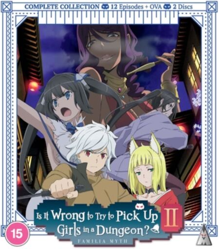 All 12 episodes and the OVA from the second season of the Japanese anime based on Fujino Omori's light novel. Bell Cranel (voice of Yoshitsugu Matsuoka) is a naive young adventurer who dreams of being the greatest of his kind in the great city of Orario. The network of catacombs beneath the city, known as the 'Dungeon', is a labyrinthine lair of monsters and mystery which all adventurers seek to overcome. This is no mean feat and Bell faces a monumental task in questing there, that is until he has a chance meeting with the goddess Hestia (Inori Minase). With her help and that of the companions they make along the way, Bell restlessly seeks adventure in the Dungeon where a sinister power dwells. The episodes are: 'Party, Banquet of the Gods', 'Apollo, Sun God', 'Conversion, Gathering', 'War Game', 'Home, the Hearthfire Mansion', 'Ishtar Familia, City of Lust', 'Renard, Fox Person', 'Ephemeral Dreams, Killing Stone', 'Berbera, War Prostitutes', 'Argonaut, Longing to Be a Hero', 'Rakia, Army's Advance' and 'Song of Love, Goddess and Child'. The collection also includes the OVA episode 'Is It Wrong to Go Searching for Herbs On a Deserted Island?'. ...