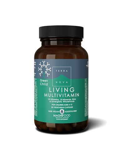 TERRANOVA GREEN CHILD LIVING MULTIVITAMIN 4-12år. Terranova's nye børneserie (4-12 år) Green Child er af meget høj kvalitet, og helt fri for tilsætningsstoffer, med helt naturlige råvarer. Living Multivitamin er en multivitamin for børn mellem 4-12 år. Produktet er meget synergistisk, mild og balancerende, og ...