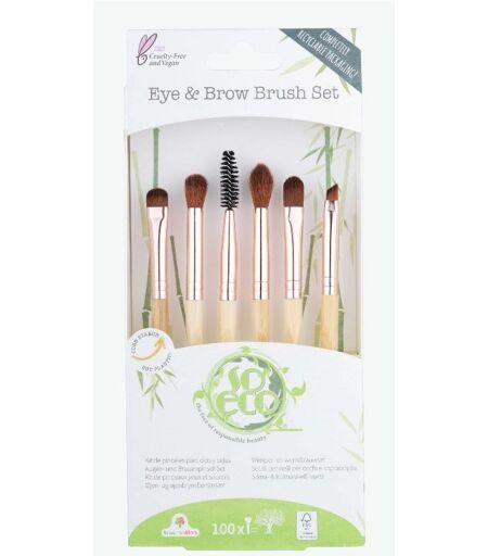So Eco Eye og Brow Brush Set er en lækker sampak, som indeholder 6 forskellige pensler. Med dette sæt får man alt hvad man behøver, for at lægge en smuk øjen -og brynmakeup, uanset om det er til hverdag eller fest. Alle pensler fra So Eco er lavet af bæredygtige materialer, som både er let nedbrydelige og genanvendelige. De er fremstillet af økologisk bambus, genanvendt aluminium og syntetiske børstehår. Derudover er emballagen PEFC godkendt og lavet af træ fra bæredygtigt kontrolleret skovbrug. Sættet indeholder: 1 stk. So Eco Eye Shading Brush 1 stk. So Eco Small Tapered Crease Brush 1 stk. So Eco Brow og Lash Brush 1 stk. So Eco Tapered Crease Brush 1 stk. So Eco Large Eyeshading Brush 1 stk. So Eco Brow Brush So Eco Eye Shading Brush er en pensel til øjenskygge, som med sit lille hoved gør det nemt at præcisere påføringen. So Eco Small Tapered Crease Brush er en lille og blød pensel til øjenskygge, som gør at den kan blende farver sammen og udligne kanter til perfektion. So Eco Brow og Lash Brush er en børste, som både kan bruges til at frisere ens bryn i den ønskede form, samt til at redde vipperne med så man undgår klumper fra mascara. So Eco Tapered Crease Brush er en stor og blød pensel til øjenskygge, som gør at den kan blende farver sammen og udligne kanter til perfektion. So Eco Large Eyeshading Brush er en skøn pensel, som gør påføringen af øjenskygge til en leg. Den har et bredt børstehoved, som gør at man på ingen tid kan lægge en smuk øjenskygge på hele øjenlåget. So Eco Brow Brush er en lille 'tæt' pensel, der med sit flade hoved og skrå snit gør det muligt at optegne ens øjenbryn til perfektion. ...