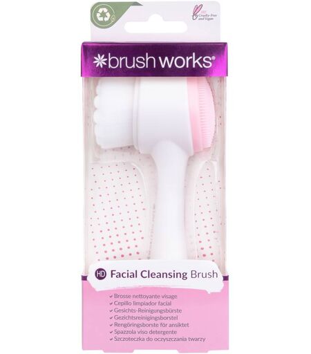 Brushworks Facial Cleansing Brush er en smart rensebørste til ansigtet, som kan bruges til alle hudtyper. Børsten er designet med to slags børster, som, i kombination med dit foretrukne renseprodukt, giver dit ansigt en skånsom og effektiv rens. Første kommes renseproduktet på den lyserøde side af Brushworks Facial Cleansing Brush, hvor de korte, bløde silikonebørster masserer og blidt eksfolierer huden, så døde hudceller fjernes og er med til at give huden en fornyet glød. Herefter bruges de bløde, syntetiske hår til at arbejde renseproduktet godt ind i huden og ned i porerne, for at fjerne snavs, overskydende olie og makeuprester. Brug Brushworks Facial Cleansing Brush til at gøre den daglige rens til en luksuriøs oplevelse. Børsten gør ikke blot din hud dejlig ren og strålende, den bliver også i stand til at kunne tage bedre imod de efterfølgende hudplejeprodukter. Fordele: Rensebørste til ansigtet Til alle hudtyper 2 typer børstehår med forskellige egenskaber Masserer og eksfolierer blidt huden Renser hud og porer i dyden Fornyer hudens glød Bedrer optagelsen af hudplejeprodukter Luksuriøs renseoplevelse Anvendelse: Fugt huden med varmt vand for at åbne porerne Kom renseproduktet på silikonebørsterne og massér huden i cirkulære bevægelser Vend børsten om og arbejd renseproduktet ind i huden med de hvide børstehår Skylles huden og dup den tør med et håndklæde Afslut med din sædvanlige hudplejerutine ...