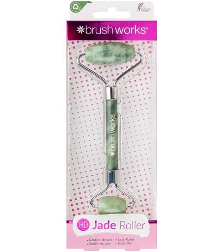 Brushworks HD Jade Roller er en fantastisk ansigtsrulle, som kan give din hudplejerutine en ny dimension i form af lækker selvforkælelse, samt en række andre herlige fordele. Dette redskab er designet med smukke, kølende ruller af jadesten i 2 størrelser, hvor den store bruges til de større flader, som pande, kinder og hals, mens den lille er god til snævre områder omkring næse, mund og øjne. Brushworks HD Jade Rollers kan bruges til at fordele et serum eller en olie jævnt i ansigtet. Samtidig får huden også blid massage, som kan stimulere blodcirkulationen og dermed øge absorptionen af de anvendte produkter. De kølende ruller har også en beroligende effekt på ansigtet, som kan løsne spændinger, ligesom de tilmed kan modvirke hævelser og reducere synligheden af rynker og porer. Ved at bruge Brushworks HD Jade Roller får du ikke blot en skøn følelse af velvære, når du bruger den. Den kan også hjælpe dig med at få større udbytte af dine hudplejeprodukter, ligesom endda kan give din hud en mere ungdommelig og levende udstråling. Fordele: Jaderulle til ansigt og hals Lille og stor rulle Kølende og beroligende effekt Masserer huden blidt Stimulerer blodcirkulationen Kan øge absorptionen af de anvendte produkter Modvirker hævelser Kan reducere synligheden af rynker og porer Levende udstråling Anvendelse: Kom serum eller olie på afrenset hud i ansigtet og på halsen Brug et let tryk og før rullen i ud- og opadgående bevægelser over huden Rul 4-5 gange i hvert område, rul kun fremad, ikke tilbage Begynd med hage og kæbelinje, start i midten af ansigtet og rul mod ørerne Rul herefter over kinderne, begynd ved næsen og afslut ved toppen af ørerne Brug den lille rulle under øjnene, start i øjenkrogene og afslut i tindingerne Følg herefter øjenbrynenes form fra næse til tindinger Rul panden fra midten og udad Afslut med langsomme rul i panden begyndende mellem øjenbrynene og op til hårgrænsen Aftør begge ruller med en tør eller opvreden klud. Må ikke vaskes med vand TIP: Ønskes ekstra kølende effekt, kan rullen opbevares i køleskabet mellem anvendelse OBS: Da produktet er lavet af natursten, kan farven variere fra rulle til rulle. ...