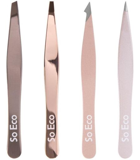 So Eco Combination Tweezer Set er en perfekt sammensætning af 4 forskellige pincetter, som er lavet af rustfrit stål af høj kvalitet. Hver pincet har hver deres unikke funktion, samt hver deres smukke rosa-guld farve. Sættet består af: En skrå pincet - god til større områder og ideel til at forme brynet En lige pincet - ideel til påføring af falske øjenvipper En skrå spids pincet - en multifunktionel pincet til at rette dine buer En spids pincet - en præcisionspincet, som er ideel til indgroede hår og fjernelse af splinter ...