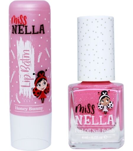 Miss NELLA Honey Bunny Set er en utrolig fin sampak til den pynte-glade pige. Denne sampak indeholder nemlig en læbepomade, der både plejer, beroliger og fugter læberne. Ikke nok med at de efterlades bløde og behagelige, så bliver de også tilført lidt farve. Derudover er der en neglelak, som er udviklet specielt til børn. Lakken er 100% fri for farlige kemikalier, miljøvenlig, duftfri og vandbaseret, og kan nemt fjernes igen ved at pille den af med fingrene. Sættet indeholder: 1 stk. Miss NELLA Lip Balm 4,8 gr. - Honny Bunny 1 stk. Miss NELLA Nail Polish 4 ml - Watermelon Popsicle ...