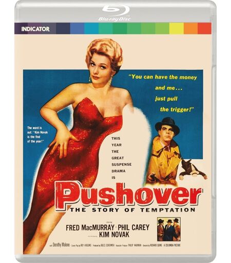 "Richard Quine (Drive a Crooked Road) directs Pushover, a film noir classic featuring a top-notch cast including Fred MacMurray (Remember the Night), Kim Novak (5 Against the House), Phil Carey (The Long Gray Line), and Dorothy Malone (Convicted). Lona (Novak) is the girlfriend of a bank robber suspected of murder, and detectives Sheridan (MacMurray) and McAllister (Carey) are assigned to stake out her apartment, where each becomes dangerously fixated – Sheridan with Lona, and McAllister on her neighbour, Ann (Malone). Then Lona makes Sheridan an offer... to kill her lover and run away with her. With its themes of surveillance and obsession prefiguring Novak’s role in Alfred Hitchcock’s Vertigo, Pushover is a triumph of suspense, and an acknowledged influence on Jean-Luc Godard’s Breathless. " Extras "INDICATOR STANDARD EDITION SPECIAL FEATURES High Definition remaster Original mono audio Audio commentary with film historians Alexandra Heller-Nicholas and Josh Nelson (2021) Partners in Crime and Comedy (2021, 19 mins): author and critic Glenn Kenny discusses the careers and collaborations of director Richard Quine and actor Kim Novak Blunder Boys (1955, 16 mins): comedy short starring the Three Stooges, in which the trio play detectives assigned to the case of a justice-evading bank robber Original theatrical trailer Image gallery: publicity and promotional material New and improved English subtitles for the deaf and hard of hearing" ...