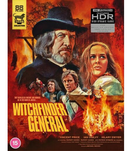 With the English Civil War raging, Witchfinder Matthew Hopkins uses the fear and confusion caused by the conflict to enact his forms of cruelty and extortion on a small rural community. He and his sadistic assistant John Stearne exploit the uneducated villagers for cash and gold, laying waste to transgressors with their reign of torture and execution. But one man, a young soldier arrives to go after the pair in a fit of bloody revenge. Simply one of the most brutal British films of the late 60s, this Tigon-produced Michael Reeves (The Sorcerers) film featuring American horror star Vincent Price and Ian Ogilvy, offers up a maliciously violent polemic about the dangers of baying mobs and propaganda-fuelled cynical opportunists. Extras Brand new 4K Remaster from the Original Negatives presented in Ultra High Definition (2160p) in 1.85:1 Aspect Ratio Presented in Dolby Vision High Dynamic Range (HDR10 Compatible) High Definition (1080p) Blu-ray in 1.85:1 Aspect Ratio Also Included LPCM 2.0 English Mono Optional English Subtitles Audio Commentary by Kim Newman and Sean Hogan Back on the Horse - Ian Ogilvy on Witchfinder General Which Witch is Which? - Adam Scovell on Witchfinder General Alternate Nude Scenes (UHD) Alternate US “Conqueror Worm” Opening and Closing Titles (UHD) UK Theatrical Trailer (UHD) USA “Conqueror Worm” Trailer ...