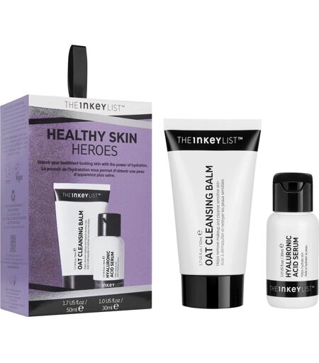 The Inkey List Healthy Skin Heroes er den perfekte duo, der giver dig frisk, hydreret og strålende hud. Pakken byder nemlig på Oat Cleansing Balm og Hyaluronic Acid Serum, som arbejder sammen for at sikre, at din hud får den perfekte balance af dybderensning og intens fugt. Start din rutine med Oat Cleansing Balm, som fjerner effektivt makeup, inkl. vandfast og langtidsholdbar, samtidig med at den beroliger og nærer huden. Formuleret med havreolie og kolloid havre, lindrer den tør og sensitiv hud, efterlader den blød og fyldt med glød. Efter rensningen fuldender du din hudpleje med Hyaluronic Acid Serum, som giver øjeblikkelig, langvarig hydrering. Med 2 % multimolekylær hyaluronsyre binder serummet fugten i huden og forbedrer dens fylde og glathed. Denne lette formel trænger hurtigt ind og tilfører intensiv fugt til flere lag af huden for en sund og frisk udstråling. Prøv The Inkey List Healthy Skin Heroes, som er velegnet til alle hudtyper, selv den mest sensitive, og sikrer, at din hud får den ultimative pleje – frisk, hydrering og glød i ét. Sættet indeholder: 1 stk. The Inkey List Oat Cleansing Balm 50 ml 1 stk. The Inkey List Hyaluronic Acid Serum 30 ml ...
