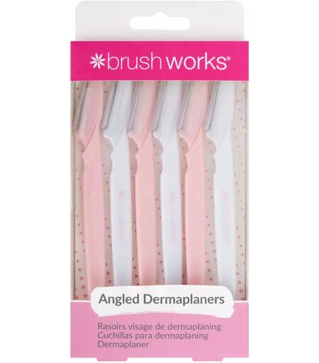 Brushworks Angled Dermaplaners er en pakke med 6 smarte skrabere, som kan bruges til dermaplaning. De kan ligeledes bruges fjernelse af uønskede hår i ansigtet og ved brynene, som et smertefrit alternativ til voks og pincet. Brushworks Angled Dermaplaners er designet med et superskarpe barberblade, der fjerner dun i ansigtet, samtidig med at de eksfolierer hudoverfladen, så du opnår en glattere hud, som danner en perfekt base for en smuk makeup. Samtidig vil en eksfoliering også fjerne døde hudceller, der er med til at fremme en mere levende udstråling, ligesom det også kan øge absorptionen af dine hudplejeprodukter. Disse skrabere er meget nemme at anvende. De skal blot føres forsigtigt over huden i en 45 graders vinkel. Prøv Brushworks Angled Dermaplaners og oplev effekten på din egen hud. Fordele: Dermaplaners Indeholder 6 stk. Superskarpe blade Fjerner uønskede hår i ansigtet Smertefrit alternativ til voks og pincet Eksfolierer huden Gør huden glattere og mere strålende Skaber en perfekt base for en smuk makeup Øger absorptionen af hudplejeprodukter Nemme at anvende Anvendelse: Hold skraberen i en 45 graders vinkel og før den forsigtigt hen over huden Kan også bruges til at formning af øjenbrynene ...