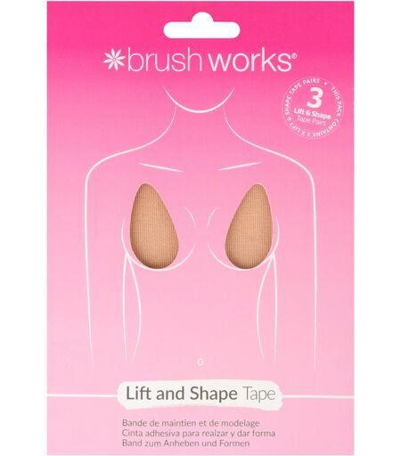 Brushworks Lift og Shape Tape er et helt fantastisk og uundværligt produkt der giver dig perfekt løft og hold, så du kan bære dit tøj med selvtillid. Lift and Shape Tape er Perfekt til alt tøj, der er uden stropper, ryg eller har en lav udskæring. Den pæreformede tape er smart designet til at give en subtil, men forbedret push-up og støtte. Denne behagelige tape er stærk, strækbar og langvarig, så du kan være smuk og tryg ved, at alt vil blive på plads hele dagen og hele natten! Dette pakke indeholder 3 par Lift and Shape Tape. PETA-godkendt - cruelty-free og vegansk venlig. Fordele: Body tape Til krop og barm Giver løft, form og støtte Holder længe Hudvenligt, strækbart og åndbart materiale Velegnet til alle hudtyper Nemt at sætte på Lægger sig sømløst på huden Anvendelse: Påføres helt ren og tør hud Pil den hvide bagside af Sæt tape på barmen hvor du ønsker løft og støtte Det anbefales at lave en hudtest over 24 timer inden anvendelse. Fjern tapen, hvis der opstår irritation. ...