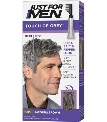 Just For Men Touch of Grey er en permanent hårfarve, som går ind og nedtoner de grå hår, uden at fjerne dem helt, så det stadig ser helt naturligt ud. Den avancerede formulering er designet til at blende dine grå hår sammen med din eksisterende hårfarve, som resulterer i et super flot og naturligt resultat, der holder i op til 8 uger. Oplev den magiske kombination af din naturlige charme og personlighed, som Just For Men Touch of Grey kan give dig, og glem alt om dyre salonbesøg eller timer brugt på at vente i kø – med Just For Men Touch of Grey får du en øjeblikkelig makeover på blot 5 minutter, som passer perfekt ind i din travle hverdag. Just For Men Touch of Grey er altså perfekte valg for mænd, der ønsker at omfavne deres unikke skønhed uden at gå på kompromis med deres ungdommelige energi. Gå ud i verden med selvtillid og vis, at alder kun gør dig endnu mere uimodståelig. Sættet indeholder: 1 stk. Hårfarve 40 gr. 1 stk. Fordelingskam 1 par Engangshandsker 1 stk. Brugsvejledning Fordele: Hårfarve til mænd Nedtoner grå hår Holder i op til 8 uger Ammoniakfri Anvendelse: Læs og følg altid brugsvejledningen meget nøje Sæt fordelingskammen på tuben Red kammen igennem håret imens du klemmer tuben Start i det område hvor håret er mest gråt Sørg for at komme godt ned til rødderne. For det bedste resultat bruges alt hårfarven i tuben Massér til sidst produktet godt ind med fingrespidserne Lad sidde i præcis 5 minutter, ellers bliver resultatet mørkere end forventet Skyl grundigt under bruseren ...