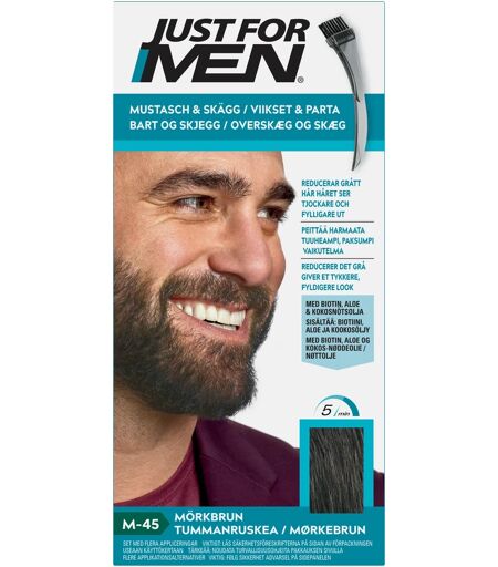 Just For Men Beard Colour er den perfekte skægfarve til mænd, der ønsker fremhæve deres skæg med selvtillid og stil. Derudover går den effektivt ind og skjuler de grå hår samt giver en mere fyldigt udstråling. Denne skægfarve er skabt med det formål at give dig et naturligt og fejlfrit resultat hver gang. Den innovative farveteknologi er specielt udviklet til at trænge dybt ind i skæghårene og give en jævn farve uden at skabe pletter eller ujævnheder. Resultatet er et skæg, der ser friskt og velplejet ud, og farven holder indtil de grå hår vokser ud igen. Så tag kontrollen over dit skæg og glem alt om grå hår, der får dig til at føle dig ældre end du er. Med Just For Men Beard Colour kan du genskabe din ungdommelige glød og bevare et ungdommeligt udseende. Tuberne er med skruelåg, og resten kan derfor gemmes til næste gang skægget trænger til en opfriskning Sættet indeholder: 1 stk. Farve base 14 gr. 1 stk. Farveudvikler 14 gr. 1 stk. Pensel 1 par Engangshandsker 1 stk. Brugsvejledning 1 stk. Blandingsbakke Fordele: Skægfarver Udjævner huller Giver et fyldigere udseende Dækker grå hår Holder indtil de grå hår vokser ud Anvendelse: Læs og følg altid brugsvejledningen meget nøje Pres en smule farve ned i blandingsbakken Pres samme mængde farvefremkalder ned i bakken (1:1) Bland produkterne med enden fra penslen Påfør blanding på tørt og rent skæg. Det må ikke masseres ind med hænderne. Start med de områder hvor der er grå skæg Børst forsigtigt op og ned for at dække alle skæg Lad farven sidde i præcis 5 minutter, ellers bliver resultatet mørkere end forventet Skyl produktet grundigt ud under bruseren ...