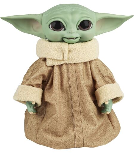 Grogu (The Child), som fans har givet kælenavnet ""Baby Yoda"", er sulten! Dette animatroniske Mandalorian-legetøj er parat til action og eventyr, og der er en hel galakse af funktioner som nuttede lyde, sjove animerede bevægelser og interaktivt tilbehør. Placer noget af det Star Wars-inspirerede medfølgende tilbehør i hans hånd, og se, hvordan han reagerer! Hvis du giver ham noget i munden, laver han lyde, der fortæller dig, om han kan lide det eller ej. Når Grogu (The Child) vil tages op og bæres, rækker han begge arme op. Og hvis du aktiverer Kraften, udfører denne Baby Yoda-figur en bevægelse med 2 hænder inspireret af scener fra 2. sæson af actionserien The Mandalorian på Disney+. Af yderligere funktioner kan nævnes serieinspirerede lydeffekter, en flot stofkutte, bevægelige legemsdele (hoved, ører, arme) og øjne, der kan blinke! Star Wars-produkterne er produceret af Hasbro med tilladelse af Lucasfilm Ltd. Hasbro og alle relaterede betegnelser er varemærker, der tilhører Hasbro. ...