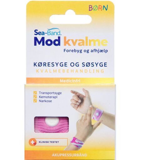 Sea-Band armbånd mod kvalme forebygger, afhjælper eller lindre kvalme og opkast i forbindelse med køresyge, søsyge,graviditet, kemoterapi og narkose. Sea-Band er det naturlige valg og virker typisk indenfor få minutter og har ingen sløvende b ...