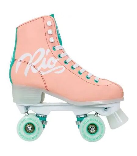 Mode og retro rulleskøjter i pastelfarver. Rio Roller Script skøjter i ferskenfarver er vegan-venlige med en PVC-læder konstruktion. Den har forbedret hælstøtte, hurtige kuglelejer og PU cast stoppere med unbraconøgle boltfiksering. ...