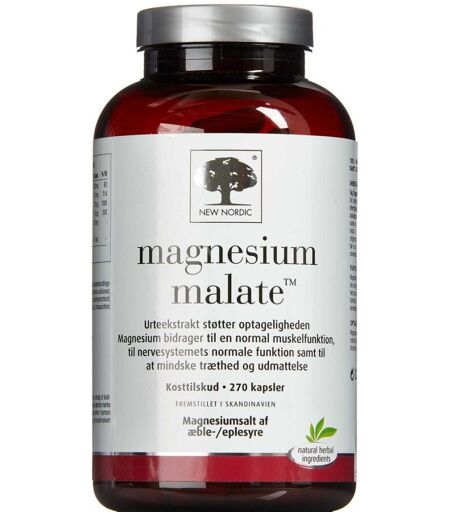 Magnesium malate er en frugtsyre - magnesiumsalt af æblesyre, dvs. en organisk bundet magnesiumkilde. Magnesium reducerer træthed og udmattelse samt bidrager til opretholdelse af normal muskelfunktion. Derudover bidrager magnesium til elktrolytbalancen og til nervesystemets normale funktion og til et normalt energistofskifte. Dispenseringsform Kapsler. ...
