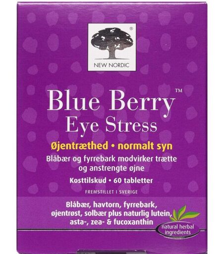 Blue Berry Eye Stress tabletten er ideel til brugere af digitale enheder og computer. Tabletten anbefales til personer der ønsker hjælp med at opretholde et normalt syn og vitalitet. Dispenseringsform Tabletter. Dosis og anvendelse Anbefalet daglig dosis: 2 tabletter i forbindelse med et måltid og et glas vand. Anbefalet daglig dosis bør ikke overskrides. ...