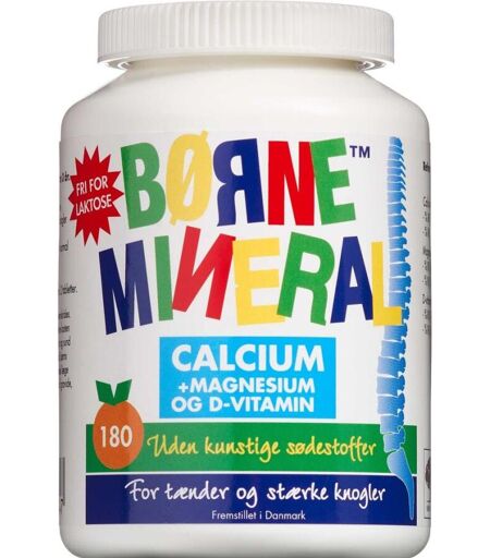Børne Mineral er en tyggetablet til børn, der har problemer med at få nok kalcium. Børn i voksealderen har specielt brug for kalcium til udvikling af tænder, knogler og muskulatur. BørneMineral sikrer kroppens behov for kalcium, magnesium og D-vitamin. Børne Mineral er fri for laktose og uden kunstige sødestoffer. Dispenseringsform Tyggetabletter ...