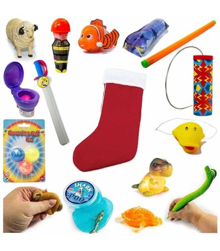 Vi har det perfekte produkt designet til at fjerne julestressen for dig ved at tilbyde forudfyldte julestrømper. Indeni denne traditionelle røde og hvide strømpe er der en samling af 15 stykker legetøj, der er blevet nøje udvalgt for at appellere til drenge fra 3 år og opefter. Hver strømpe kommer forseglet og klar til at blive åbnet som en overraskelse julemorgen. Denne artikel tilbyder svimlende værdi for pengene og er en enorm tidsbesparelse for travle voksne og forældre, der ønsker at købe lidt gaver. Det er børnenes julestrømper sorteret i et enkelt køb - hvem kan sige nej til det - Hele listen over strømpens indhold findes nedenfor. Se billede 2 for hvad der er i julesokken. Total vægt: ca. 1.5 kg Clockwork Svømmende FiskEnhjørning penStressbold skildpaddeToilet fyldt med slimSky Shout TubeBubble MenHajebæ med figurSenganger nøgleringHoppebolde (3-pak)AndenæbDinosaur flydende badelegetøjDinosaur penSkumsværd15 cm kæledyrsfigurDinosaur vandormIkke for børn under 3 år ...
