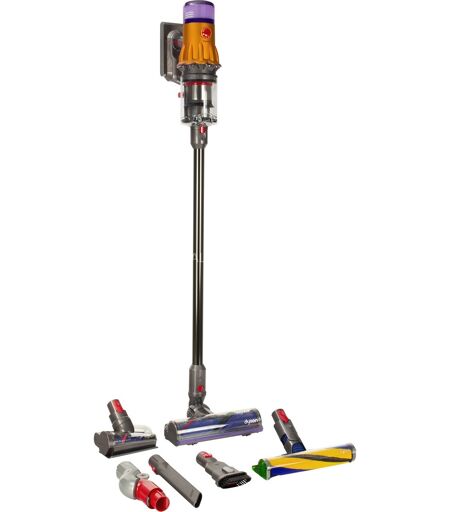 Dyson V12 Detect Slim Absolut er en kompakt støvsuger til rengøring af hele hjemmet. Den lave vægt på 2,2 kg giver mulighed for grundig rengøring fra gulv til loft. Motorbar gulvdysen med direkte drev og et ergonomisk formet sugerør muliggør grundig og bekvem rengøring på gulve. Hårdysen er velegnet til rengøring af madrasser, polstrede møbler og trapper i håndholdt støvsugertilstand. Hårde gulve rengøres pålideligt og grundigt med den specielle Laser Slim Fluffy gulvdyse. Root Cyclone-teknologien med 11 basecykloner genererer centrifugalkræfter på op til 100.000 g for at fjerne støv og snavs fra luftstrømmen. Der er således intet tab af sugekraft. Den 25 cm brede gulvdyse med bløde nylonbørster og antistatiske kulfibre er designet til at fjerne støv fra hårde gulve og fra trange rum. Den har en lav profil for at gøre den nem at rengøre under møbler. Filteret kan vaskes, og støvbeholderen og gulvdyserne kan let tørres af for at fjerne støvaflejringer. En præcist justeret lysstråle gør usynligt støv synligt på hårde gulve – så du ikke går glip af noget. En piezoelektrisk sensor beregner løbende antallet og størrelsen af de støvpartikler, der suges op – og øger automatisk sugekraften, hvis det er nødvendigt. ...