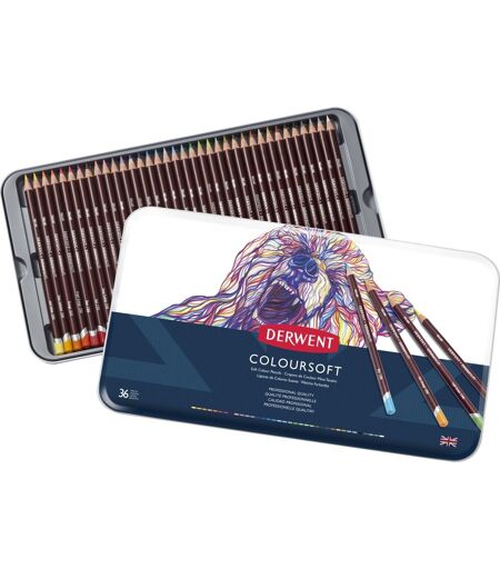 Derwent Coloursoft FarveblyanterDerwent Coloursoft er Derwents blødeste blyant nogensinde og i denne serie findes en lang række flotte og livlige farver. Som navnet antyder, har Coloursoft en virkelig blød tekstur, som fremhæver farvens rigdom. Coloursoft kan bruges til en bred vifte af tegneteknikker, hvor den bløde tekstur gør blyanterne oplagte til at mixe og blande farverne på papiret. 36 forskellige farverLeveres i en flot metalæskeDen stolte historie om engelskproducerede blyanter går helt tilbage til 1832. Allerede i 1938 producerede Derwent den første farveblyant, og lige siden har Derwent haft fuldt fokus på at producere kunstnerartikler i ekstraordinær høj kvalitet og med et konstant øje på innovation. I generationer har Derwent, verden over, været mange kunstneres foretrukne mærke. ...