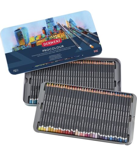 Derwent Procolour FarveblyanterDerwent Procolour er højkvalitets voks farveblyanter, hvor du både får en ekstra stærk spids som også er nem at anvende, når du arbejder i forskellige farvelag. Voksfarven glider som en olie samtidig med, at den leverer en utrolig dækkeevne. 72 forskellige farverLeveres i en flot metalæskeDen stolte historie om engelskproducerede blyanter går helt tilbage til 1832. Allerede i 1938 producerede Derwent den første farveblyant, og lige siden har Derwent haft fuldt fokus på at producere kunstnerartikler i ekstraordinær høj kvalitet og med et konstant øje på innovation. I generationer har Derwent, verden over, været mange kunstneres foretrukne mærke. ...