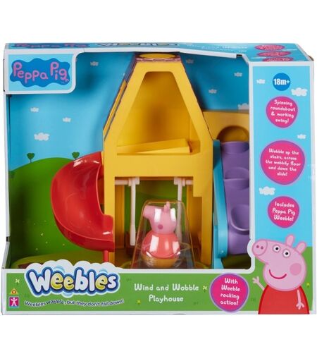 Lad os lege! Dette søde vaklende huslegesæt har en drejende karrusel og en gynge. Dine vibes kan vakle op ad trappen, hen over det vaklende gulv og ned ad rutsjebanen. Opmuntre børn til at udvikle deres motoriske færdigheder. Sættet indeholder et huslegesæt og en Peppa Pig Weeble. Peppa Pig Weeble figurer er ideelle fra 18 måneder og opefter. Anbefalet fra 18 måneder. ...