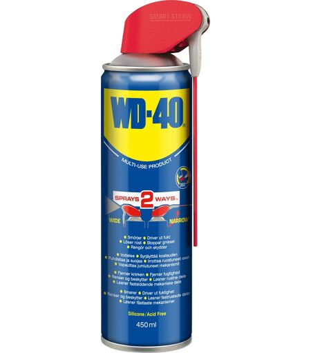 WD-40 multifunktions smøremiddel, 450ml WD-40 Smart Straw er den klassiske multispray med et indbygget sprayrør til præcisionsarbejde. Den har to forskellige sprayfunktioner, der er nemme og hurtige og skifte imellem, så du altid har den rigtige funktion lige ved hånden. Det indbyggede sprayrør er ideelt til præcisionsarbejde på smalle og snævre områder. Det sikrer præcis påføring i svært tilgængelige og fastlåste dele. Du kan nemt skifte til den brede sprayfunktion ved at vippe præcisionsrøret ned. Den brede sprayfunktion er velegnet til behandling af større overflader. Ventilen kan bruges i alle vinkler, der gør det muligt at påføre produktet lodret eller på hovedet, så du kan løse alle slags opgaver. WD-40 Smart Straw gør det nemt at vedligeholde og beskytte dit udstyr, uanset opgaven. Med denne alsidige multispray har du altid den rette løsning lige ved hånden. Indeholder: 450 ml Bred og smal sprayfunktion for maksimal fleksibilitet Fjerner fugt for at forebygge rust og mindske udtørring af elektriske systemer Trænger ind og løsner fastlåste dele Smører udstyr, så det kører problemfrit Fjerner olie, snavs og fedt Beskytter metaloverflader mod rust og korrosion Nem at anvende 360°-ventil Anbefalet til: Haveredskaber, batteriklemmer, låse og hængsler, maskinværktøj, cykelstel, motorer, legeringer og udstødninger ...