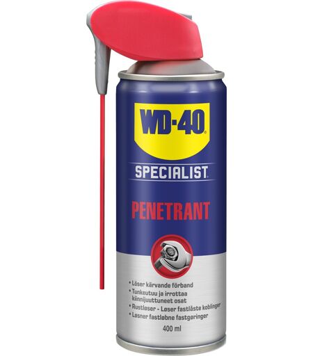 WD-40 Specialist penetrant spray, 400 ml WD-40 Specialist penetrant er en effektiv spray, der hurtigt trænger ind i rustne og fastsiddende dele. Den er udviklet til at løsne fastkørte mekanismer og fastgørelser, så de bliver lettere at arbejde med. Den avancerede formel med lang overfladespænding sikrer, at produktet kan krybe ind i selv de mindste sprækker og svært tilgængelige områder. Sprayen er kompatibel med alle metaller og har en vandafvisende effekt, hvilket beskytter mod fremtidig rust og korrosion. Smart Straw-funktionen giver mulighed for både præcis og bred påføring, så du kan anvende produktet målrettet eller dække større områder efter behov. WD-40 Specialist penetrant gør det nemt at løsne og beskytte mekaniske dele, uanset opgaven. Med denne spray har du altid den rette løsning lige ved hånden. Indeholder: 400 ml Smart Straw for præcis og bred påføring Velegnet til svært tilgængelige steder Trænger hurtigt ind i rustne eller fastsiddende dele Løser fastsiddende fastgørelser og mekanismer Forhindrer rust og korrosion Formel med lang overfladespænding Kompatibel med alle metaller Vandafvisende Anbefalet til: Bolte, møtrikker, låse, kæder, hængsler, lukkemekanismer, remskiver, lejer, rørledninger, transportbånd, værktøj, fastsiddende fastgørelser, skruer og haner. ...