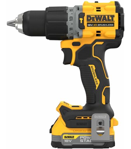 Dcd805E2T batteridrevet boremaskine/driver fra DeWALT er en kraftfuld kombiboremaskine med højere ydeevne og mere kompakte dimensioner samt en længere levetid på grund af børsteløs motorteknologi sammenlignet med den sammenlignelige forgængermodel. Den optimalt indstillede to-trins metaltransmission sikrer perfekt kraftoverførsel, og den elektroniske momentkobling med præcist, 15-trins momentmodul og pålideligt nedlukningsmoment sikrer præcis skruekørsel i alle indstillinger. DCD805E2T trådløs kombiboremaskine har en robust 13 mm hurtigudløserboremaskine lavet af fuld metal samt problemfri håndtering på grund af automatisk spindellåsning, elektronisk hastighedsregulering og højre og venstre rotation. Det kompakte og afbalancerede design og det ergonomisk gummierede håndtag giver maksimal sikkerhed og arbejdskomfort. Endnu mørkere arbejdsområder er ikke noget problem, fordi den innovative tretrins LED med præcist justeret lyskegle og ekstremt stærk lysstyrke på 70 lumen bringer lys ind i de mørkeste hjørner. Sikkerhedselektronikken (permanent kontrol af batteritemperatur, strømudtag og afladningsbeskyttelse) muliggør problemfri langvarig brug. DCD805E2T leveres som standard med T STAK-boks og to innovative 18 volt POWERSTACK-batterier fra DeWALT. De bruger den revolutionerende teknologi med stablede poseceller og har 25% mere kompakte dimensioner og mindre vægt på grund af den mere effektive udnyttelse af pladsen i batterihuset. Lavere interne modstande i cellerne muliggør mere effektiv strømstrøm og dermed en betydeligt højere strømforsyning af maskinen. ...