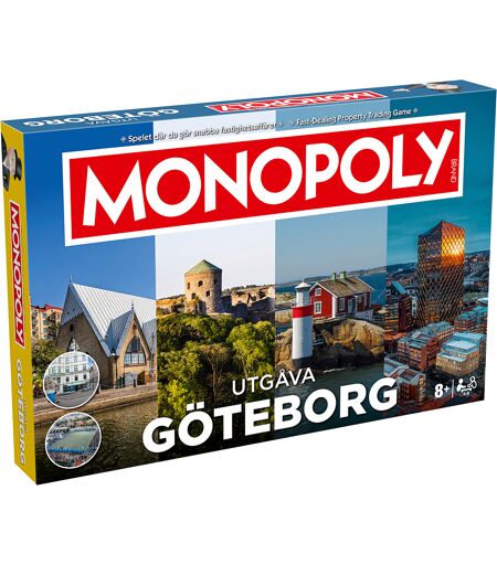 Monopoly Göteborg Klassikern med lokal charm Erövra Göteborgs gator i denna unika version av världens mest kända brädspel! Monopoly Göteborg tar dig med på en resa genom stadens mest ikoniska platser från Avenyn och Liseberg till Skansen Kronan och Feskekôrka. Upplev göteborgshumor, lokal kultur och spännande fastighetsaffärer i ett spel som är lika underhållande för invånare som för besökare. Spelet innehåller: Spelplan med kända Göteborgsplatser Spelpjäser, tärningar och sedlar Kort med lokala händelser och chanskort Regler på svenska och engelska Specifikationer: Antal spelare: 26 Speltid: 60120 minuter Rek. ålder: Från 8 år Perfekt som familjespel, present eller souvenir! Kasta tärningen, investera i Göteborg och låt skrattet rulla över hela brädet! ...