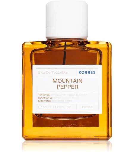 Korres Mountain Pepper, 50 ml, Eaux de Toilette unisex, Opdag duften, der ikke passer ind i nogen kasse, og som samtidigt mesterligt fremhæver personligheden hos den, der har den på. Unisex eau de toiletten Korres Mountain Pepper er præcis den duft, der lader din originalitet træde frem. en meget intens, krydret duftkomposition en original duft til en original personlighed duft egnet til hverdagsbrug og til særlige lejligheder unisex duft Ingredienser: indeholder 88 % ingredienser af naturlig oprindelse ...