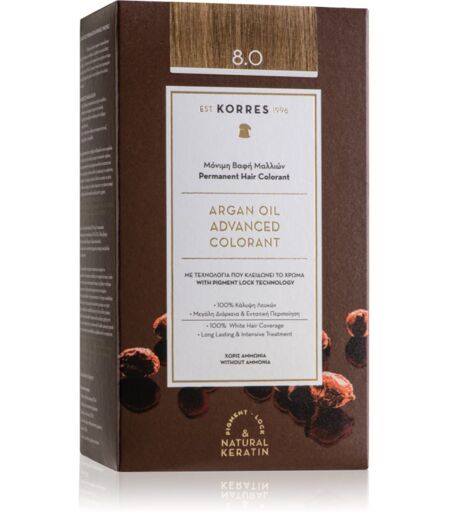 Korres Argan Oil Permanent hårfarve Med Arganolie Skygge 8.0 Light Blonde 50 ml