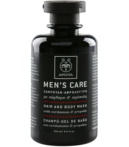 Apivita Men's Care Hair and Body Wash with Cardamon & Propolis, 250 ml, 2-i-1 brusegel og shampoo til mænd, Showergelen Apivita Men's Care Hair and Body Wash with Cardamon & Propolis gør den nødvendige hverdagshygiejne til en enestående forfriskende oplevelse. Egenskaber: kan både bruges på kroppen og i håret produkt er specielt udviklet til mænds behov forhindrer, at huden udtørrer vasker forsigtigt huden over hele kroppen Ingredienser: indeholder ikke silikone Brugsvejledning: Påfør produkt på fugtig hud, og vask alle urenheder af. Påfør en passende mængde af shampoo i det våde hår. Skum op, og skyl derefter grundigt. ...