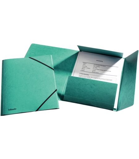 3-klap elastikmappe fra Esselte, A4 format Langtidsholdbar elastikmappe fremstillet af kraftig, gennemfarvet karton med 5 mm bred, flad elastik om hjørnerne til lukning. Mappen er forsynet med bukkelinier på forsiden og klapper, hvilket giver en større kapacitet. Elastikmappen er en hurtig og nem løsning til at bære og sortere dokumenter på kontoret, i skolen og på farten. Elastikbånd-lukning omkring hjørnerne forhindrer dokumenter i at falde ud. Farve: Grøn Format: A4 Max. kapacitet: 34 mm Mål: 230 mm x 315 mm Højkvalitets FSC-certificeret nyfiber karton, 330 gram per m2 ...