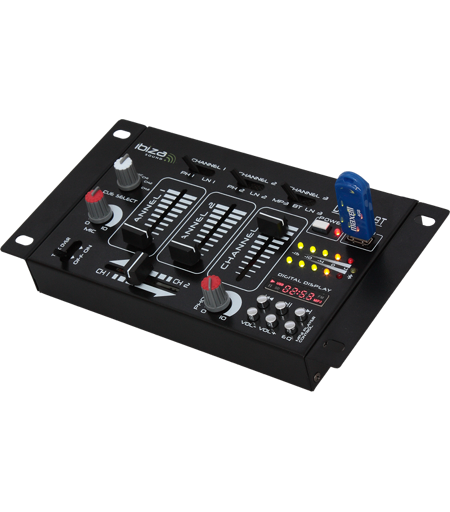 Kompakt DJ mixer med bluetooth input, så du kan streame musik trådløst fra fx smartphone.Perfekt til simple DJ opgaver eller som karaokemixer med mikrofoninput.Fire kanaler og i alt 7 inputs.Kontrolknapper til styring af mp3 afspiller direkte på mixeren.Inputs: 1x phono/line, 1x phono/USB, 1x CD, 2x MIC (L+R)Talkover funktion, der dæmper musikken mens der tales.Digitalt display. ...