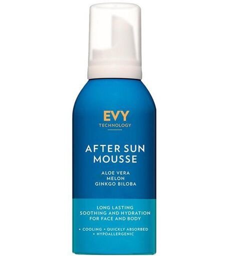 EVY After Sun Mousse är en lugnande och återfuktande mousse för hud som varit ute i solen. Moussen kan användas både till kroppen och till ansiktet och svalkar och återfuktar huden i upp till 12 timmar. Hjälper dessutom huden att behålla sin solbruna färg. Moussen är matt, kladdfri och täpper ej till porerna. EVY After Sun bygger på samma medicintekniska grundformula som EVYs övriga solskyddsprodukter. Moussen bildar en skyddsbarriär som lägger sig i hela översta hudlagret och förstärker hudens naturliga försvar utan att lämna en fet eller kladdig yta. Formulan är berikad med bland annat C- och E-vitamin, silkesextrakt och kollagen för att motverka och reparera solens skadliga effekter. Moussen innehåller aloe vera, melon och gingko bilobaextrakt för att ge en svalkande och lugnande effekt. EVY:s aftersun går bra att använda under smink. Kan även användas för att lugna huden efter rakning. Passar alla hudtyper och kan användas även på små barn. Fri från konserveringsmedel och parfym. ...