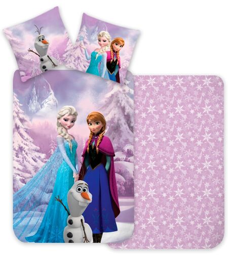 Licens Frost sengetøj til junior - 100% Blødt bomuld og vendbart betræk - 100x140 cm - Med motiver af Anna, Elsa og Olaf