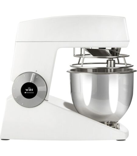 Witt Teddy Røremaskine, 5L Witt Varimixer TEDDY er en stærk, professionel 5 liter røremaskine til de små, daglige opgaver i bageriet, køkkenet og på laboratoriet. Gennemtænkt dansk design med fokus på ergonomi, hygiejne og nem rengøring og i en kvalitet, der er skabt til hårdt arbejde år efter år. Hastigheden kan justeres trinløst ved hjælp af den gennemgående betjeningsknap, så TEDDY kan betjenes fra begge sider. Knappen er også kliklås og hængselpunktet, når røremaskinens hoved vippes tilbage for at skifte værktøjer.Et fast gitter og en aftagelig påfyldningsbakke og stænkskærm beskytter både operatøren og ingredienserne, mens der er mulighed for at holde øje med omrøringen.Dens støbte, afrundede design og ingen eksterne skruer eller åbninger gør TEDDY nem at rengøre. Under drift holdes kedlen effektivt på plads af et enkelt greb. Specifikationer: Produkttype: Røremaskine Farve: Hvid Materiale: Stål Kapacitet: 5 Liter Størrelse (HxBxD): 40 x 24 x 46,2 cm Vægt: 18 kg Leveres med en 5-liters skål i rustfrit stål med et låg, et piskeris fremstillet af 2,5 mm tråd, en spartel og en specialdesignet krog, der sikrer, at dejen er æltet og vendt til perfektion. Alt tilbehør er fremstillet i rustfrit stål og tåler maskinvask. ...