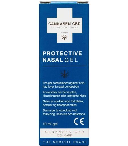 Cannasen CBD Nasal Gel er udviklet til at fugte og beskytte næsens slimhinde. Ved påføring af gelen i næsen dannes der en tynd film, som beskytter mod pollen og irritation. Produktet virker fysisk mod typiske symptomer som rhinitis, høfeber, betændt næseslimhinde og tilstoppet næse. Cannasen CBD Nasal Gel er et næsepræparat med et tredobbelt aktivt kompleks. Foruden at beskytte næseslimhinden fugter den også slimhinden, og på grund af den øgede viskositet opretholdes den beskyttende film i længere tid. Cannasen CBD Nasal Gel er en isotonisk, saltvandsbaseret, fugtgivende gel til næsen. Produktet afhjælper tør, irriteret og tilstoppet næse forårsaget af allergi, støv og lav luftfugtighed. Til langvarig fugtning af næseslimhinden. Beskytter og fugter slimhinden. Gelfilm til beskyttelse mod pollen og irritation. Bemærkning Må kun bruges efter aftale med lægen under graviditet og amning.Tag ikke næsegelen oralt.Undgå at få produktet i øjnene.Må ikke anvendes i tilfælde af kendt overfølsomhed over for nogen af indholdsstofferne.Brug ikke produktet på næseslimhinden samtidig med andre produkter.Der kan midlertidigt opstå en brændene eller stikkende fornemmelse, nysen eller løbende næse ved brug af næsegel. Dette er tegn på, at produktet virker. Disse tegn er harmløse og varer normalt ikke længe. Hvis de fortsætter, skal du stoppe brugen af produktet.Lejlighedsvis kan der opstå reaktioner som tilstoppet eller løbende næse, rindende øjne, lokal smerte, tørhed, kløe eller hævelse ved brug af næsegel.Hvis du er bekymret for, om du er allergisk, skal du straks stoppe med at bruge gelen.Kontakt lægen hvis symptomerne fortsætter.Kontakt lægen, hvis forkølelsen ikke er aftaget efter 7 dage.Applikatoren må kun anvendes af en og samme person.For at undgå lægemiddelinteraktioner bør medicin anvendes med to timers mellemrum eller efter aftale med lægen.Må kun anvendes indtil "anvendes inden"-datoen angivet på æsken.Åbne tuber skal bruges inden for 3 måneder.Produktet kan bortskaffes med normalt husholdningsaffald.Opbevares køligt (mellem 10 og 25 grader), tørt og beskyttet mod sollys. Dosis og Anvendelse Hos voksne og unge kan gelen bruges op til 2 gange dagligt.Der skal gå mindst 6 timer mellem påføringerne.Før forsigtigt næseapplikatoren op i næsen.Undgå at føre den for langt op, da det kan give skader i næsen.Hvis der ved et uheld er brugt for meget af produktet og det føles ubehageligt, kan den overskydende mængde fjernes ved at pudse næse i et lommetørklæde.Aplikkatoren skal rengøres efter hver brug med en ren serviet.Efter brug af gelen skal tuben lukkes godt til. ...