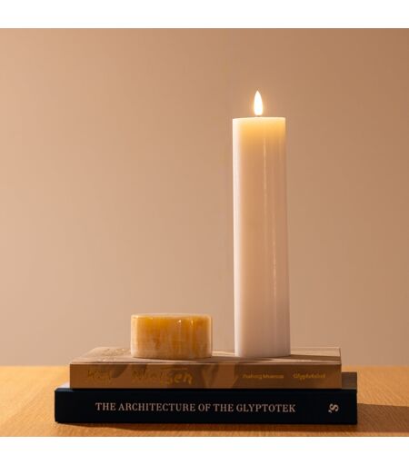 Bloklyset har en diameter på seks centimeter, hvilket passer perfekt til Georg Jensens Cobra gulvstager. Godt at vide: Fremstillet af ren stearin med rustik overflade for autentisk skønhed.Elegant flad top, der giver indtryk af et fint, nyt stearinlys og 3D flamme.Flot batteritid på 400 timer (batterier tilkøbes).Mulighed for fjernbetjening - købes separat (ikke til sort lys)Spyddet på Cobra-gulvstagerne kan afmonteres, så Luna bloklyset kan isættes. Luna LED-bloklys kommer i genanvendelig genbrugsemballage. Specifikationer: ...