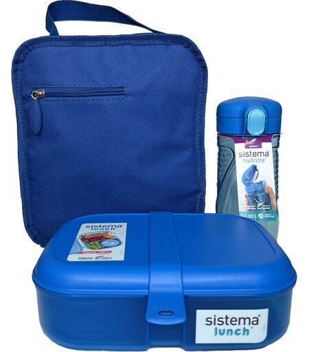 Sistema LunchTime madpakkesæt, blå Sistema Lunch Time er en smart startpakke med både madkasse, drikkedunk og en lille køletaske, så alt er samlet til en herlig, kølig madpakkeoplevelse. Sistema Lunch Time madpakkesættet indeholder: Rectangular Cooler Bag Ribbon Lunch 1,1 L i farven blå Tritan Quick Flip Bottle 520 ml i farven blå Sistema køletaske i farven blå: Den lille, isolerede køletaske holder din frokost kølig og frisk. Det solide bærehåndtag gør det praktisk og nem at transportere sin frokost. Køletasken har en ekstra lomme foran til bestik, servietter, nøgler m.v. Der kan med fordel lægges et lille køleelement i tasken for at holde maden og drikkedunken kølig og frisk i længere tid. Cooler Bag er nem at rengøre med en fugtig klud eller i varmt sæbevand. Køletasken har en vægt på 110 g. Sistema Ribbon Lunch i farven blå: Nyd bekvemmeligheden og stilen med Sistema's Ribbon Lunch To Go madkasse. Denne rummelige madkasse er designet med flere sektioner for at adskille og bevare mad og snacks frisk og indbydende hele dagen. Indsatserne kan også fjernes helt, så der er større rum til rådighed i madkassen.Den lille, medfølgende Mini Bite To Go-beholder på 130 ml er ideel til små snacks som nødder eller frugt. Madkassen er let at lukke og åbne, selv for børn, hvilket gør den perfekt til mad på farten, om det så er på arbejdspladsen, i bilen eller i børnehaven. Kapacitet: 1,1 L Mål (BxHxL): 20,4 x 6,6 x 16,1 cm Vægt: 245 g Materiale: Plast Farve: Transparent / blå Tåler opvaskemaskine Fødevaregodkendt Produceret i New Zealand Sistema gør det nemt Madkassen er let at rengøre da den tåler maskinopvask på øverste hylde. Du kan også bruge den til at fryse mad ned og endda opvarme det i mikroovnen efterfølgende (uden låg), det er godt nok smart. 100% fri for BPA og Phthalater. Sistema Tritan Quick Flip drikkeflaske 520 ml: Den uundværlige drikkedunk for folk på farten. Lavet af robust, brudsikker og ridsefri tritan plast, der ser ud som glas og ikke afgiver smag. Et enkelt tryk på knappen og frem kommer et sugerør i silikone, som gør det nemt at drikke af flasken. Perfekt til sport og cykelture, kombinerer den holdbarhed med brugervenlighed. Kapacitet: 520 ml Diameter: 7,9 cm Højde: 17,7 cm Vægt: 126 g Materiale: Ultra klart Plast Farve: Transparent / blå Tåler opvaskemaskine Fødevaregodkendt Produceret i New Zealand Ekstra koldt vand og nem rengøring - intet problem Sistema Tritan QuickFlip drikkedunken er let at rengøre og kan placeres på øverste hylde i opvaskemaskinen. Ønsker du ekstra koldt vand med på turen er det ikke noget problem, drikkedunken tåler nemlig også at komme i fryseren. Husk dog at vand udvider sig når det fryser, så det er vigtigt at drikkedunken ikke er helt fyldt når den kommer i fryseren.100% fri for BPA og Phthalater ...