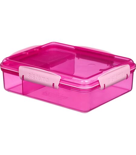Sistema Snack Attack Duo madkasse, 975 ml, pink Sistema's Snack Attack Duo er den ideelle løsning for alle der er på udkig efter en alsidig og praktisk madkasse til arbejdet, skolen eller udflugter. Med et stort rum til rugbrød eller sandwich og to mindre rum med separate låg, er den perfekt til at organisere snacks som nødder, frugt, eller grøntsagsstave. Lågene kan nemt fjernes for en mere åben ruminddeling, hvilket giver fleksibilitet til forskellige madtyper. Denne madkasse sikrer, at dine måltider forbliver friske og velorganiserede. Kapacitet: 975 ml Mål (BxHxL): 19,7 x 6 x 15,8 cm Vægt: 180 g Materiale: Plast Farve: Transparent pink Tåler fryser Tåler opvaskemaskine Tåler mikroovn (uden låg) Fødevaregodkendt Produceret i New Zealand Sistema gør det nemt Madkassen er let at rengøre da den tåler maskinopvask på øverste hylde. Du kan også bruge den til at fryse mad ned og endda opvarme det i mikroovnen efterfølgende (uden låg), det er godt nok smart. 100% fri for BPA og Phthalater. ...