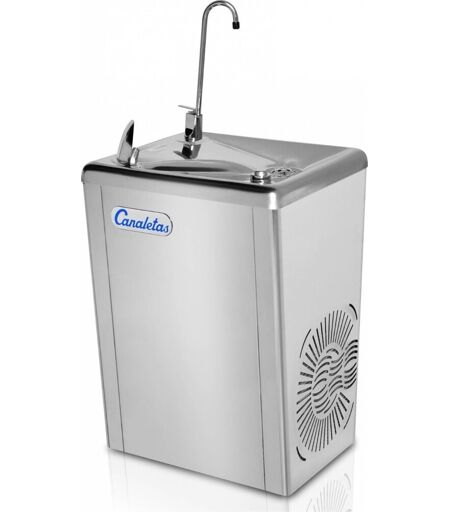 Canaletas Drikkevands fontæne kold vand, stål Denne drikkevandsfontæne fra Canaletas er robust og samtidig særdeles let at betjene. Modellen er en højkapacitets drikkefontæne, der leverer koldt vand via en hane til udskænkning i glas, kande eller drikkedunk eller til at drikke af direkte fra køleren. Maskinen har et enkelt og tidløst design og er udført i rustfrit stål. Vandfontænen er særdeles velegnet til virksomheder, skoler eller andre offentlige steder eller steder med større behov for adgang til frisk drikkevand. Fontænen er en særdeles robust og driftssikker – også i lidt udfordrende omgivelser. Højkapacitets fontænen giver dig 60 liter koldt vand i timen. Maskinen har justerbar koldtvandstemperatur. Drikkefontænen kræver tilslutning til vandforsyning, afløb og el Specifikationer: Dimensioner: (B) 360 x (D) 360 x (H) 525 mm Vandtype: Koldt vand Køleteknologi: Spiral køling Kølekapacitet: 60 liter/timen Kompresser styrke: Hermetisk 65W Kabinet materiale: Rustfrit stål A-304 ekstern/internt Kølemiddel: R290 Lækagesystem: Ja Max strømforbrug: 350 W Rumtemperatur: 10-32 0 C Strømforsyning: 230V – 50Hz – monofase Vægt: 23,3 Kg. Køletemperatur: 4-11 grader C Vandtryks krav: 1,5-4,5 Bar Varmt vand: Nej Brand: Canaletas ...