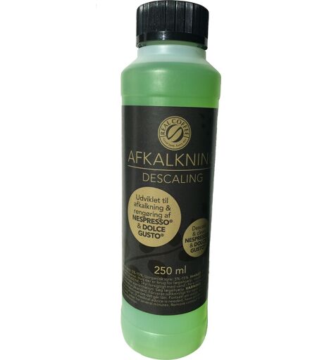 Vedligehold din kaffemaskine og forlæng levetiden Med Real Coffee afkalkning kan du rense din Nespresso maskine effektivt og hurtigt. Afkalkeren er udviklet specielt til denne type maskine, så den er skånsom imod kaffebryggerens varmelegeme og gummi-pakninger, selvom den afkalker og rengør i dybden. Resultatet er nul snavs og belægninger, og en Nespresso maskine med en forlænget levetid. Det anbefales, at du afkalker din Nespresso kaffemaskine hver måned, idet vi i Danmark har meget hårdt vand. Real Coffee afkalkning er mild og miljøvenlig, og den kommer med en udførlig vejledning. Trænger din maskine til at blive afkalket? Hvis du oplever, at din maskine er længere om, at brygge kaffe, maskinen begynder at dryppe ved udløbet eller hvis trykket er reduceret, så er det tegn på, at din maskine trænger til at blive afkalket. Ved at afkalke din kaffemaskine hver måned, er du sikret den rette temperatur samt mængde vand i koppen. Derudover så mindsker afkalkning støj og forlænger din maskines levetid. Indhold: 250 ml (nok til to afkalkninger) Kan anvendes til Nespresso og Dolce Gusto maskiner Udførlig vejledning medfølger ...