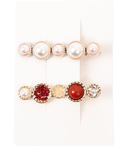 NICMA Styling Rhinestone Pins 2-pack er en pakke med 2 vidunderlige hårspænder, i et eksklusivt design. Disse hårspænder er fremstillet af høj kvalitet, hvilket gør dem stærke og holdbare, samtidig med at den takkede side, holder dem godt og sikkert på plads. I og med at det er med en klemme funktion, er de super lette at sætte i håret, hvilket også betyder, at du på kun få sekunder kan opnå et helt nyt look uanset tid og sted. Disse hårspænder kommer i to forskellige designs, så du enten kan bruge dem sammen eller hver for sig, alt efter hvilket look du føler for på en given dag. De pifter ethvert outfit op og kan bruges til alt lige fra bryllupper og fester, til en almindelig dag på kontoret. Uanset som du har langt, kort, tykt eller tyndt hår, så gør disse elegante spænder dit hår til noget helt særligt. Detaljer: Hårspænder 2 stk Guld med to forskellige designs Kan bruges til enhver lejlighed Holder godt God kvalitet Pifter ethvert look op ...