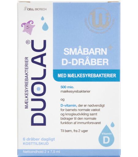 DUOLAC SMÅBARN+ D-dråber er specielt udviklet til små børn. Hver dosis på 6 dråber ...
