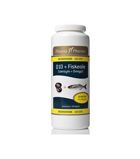 Fitness Pharma Q 10 med fisk Coenzym + Omega3 60 mg Q10 pr dagsdosis Kosttilskud - 150 stk En dagsdosis (2 kapsler) ...