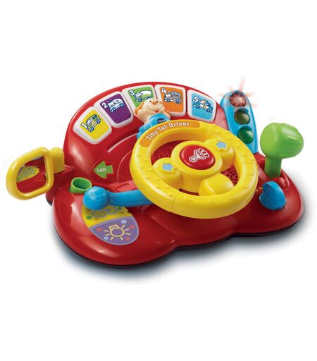 Aktivitetsrat med mange funktioner og knapper. Mere end 60 sange, melodier, lyde og fraser (svensk). Lær barnet om dyr, køretøjer, farver og tal ved hjælp af sjove fraser, sange og realistiske billyde. Drej på tændingscyklen, rør gearstangen, tryk på de farverige knapper, dyt med hornet og drej på rattet. På aktivitetspanelet er der også et bakspejl, blinklys og trafiklys. Der er tre legetilstande, som er nemme at skifte imellem (dyretilstand, køretilstand og musiktilstand). Batterier: 2xAA (demobatterier medfølger). Mål: ca. 26x22x11 cm Anbefalet alder 12-36 måneder. Anbefales til børn fra 1 år ...