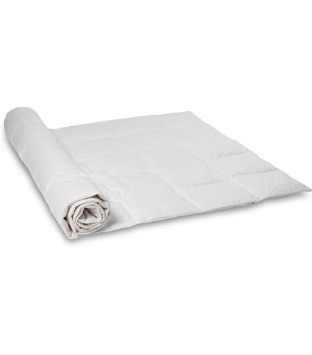 Størrelse: 180x210 cm Højde: ca. 2 cm. Fyldvægt: 1050g Fyldmateriale: 60% hvide dun 40% småfjer (naturfyld) Betræk: 100% Bomuld Elastik: Ja Type: Rullemadras med temperatur regulerende lag Konstruktion: Kassettesyet Vask: 60 grader - Vigtigt at anvende enzymfrit vaskemiddel Certificering: STANDARD 100 by OEKO-TEX® (1176-194) Certificering: NOMITE Certificering: Down PASS Certificering: FRESH Certificed space technology Certificering: Space certificeret Se lagner i samme størrelse Rullemadras / Downtopper bruges til at lægge oven på din eksisterende topmadras, og derved opnår du en suveræn temperaturregulering. Når du lægger dig på rullemadrassen, føles den umiddelbar kold, men efterhånden som den optager din varme, begynder den at regulere din temperatur, så du bliver sval, når du er varm, og lun når du er kold. En super lækker rullemadras med aktiv temperaturregulering. Rullemadrassen er udstyret med praktiske elastikker i hjørnerne, således at rullemadrassen forbliver liggende fast på din topmadras. Formålet med en rullemadras er, at skåne din madras og/eller topmadras mod fugt, snavs og bakterier, derfor kaldes en rullemadras oftest også for en madrasbeskytter eller skånemadras. Når du anvender en rullemadras er du derfor med til at forlænge levetiden på din seng eller topmadras, samtidig med at du opnår et sundere sovemiljø. Rullemadrassen kan krympe efter vask (5-9%), det er derfor vigtigt, at strække ud i rullemadrassen under tørring. Temprakon Zone Duntopper - Downtopper er en vaskbar rullemadras - Perfekt til dig der ønsker at regulere sengens temperatur. Kombineret med Temprakon dyner og puder skabes den perfekte klimazone til en god nats søvn. ...